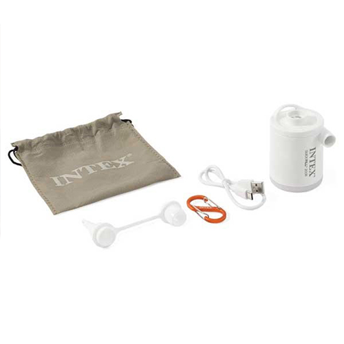 پمپ باد شارژی چراغ دار اینتکس مدل USB200R – LED یکی از خاص ترین و حرفه ای ترین پمپ بادی است که با قابلیت اتصال به کابل یو اس بی شارژ می شود و می تواند برای مدت زمان طولانی قابلیت باد کردن محصولات بادی را دارد و می تواند باد داخل آن ها را نیز مکش کند. این محصول دارای ابعاد کمجا است تا به راحتی جا به جا شود و در مسافرت و کوهنوردی همراه افراد باشد. از این رو کاربرد آسان دارد و افراد زیادی تمایل به داشتن آن دارند و می توانند از آن در طول عمر بالا استفاده نمایند. پمپ باد مد نظر دارای چراغ ال ای دی نیز می باشد که می تواند در زمان نیاز محیط را روشن سازد. در بدنه محصول دکمه برای روشن و خاموش کردن محصول وجود دارد که می تواند به راحتی این کار را انجام دهد و در نتیجه استفاده از این محصول آسان بوده است.