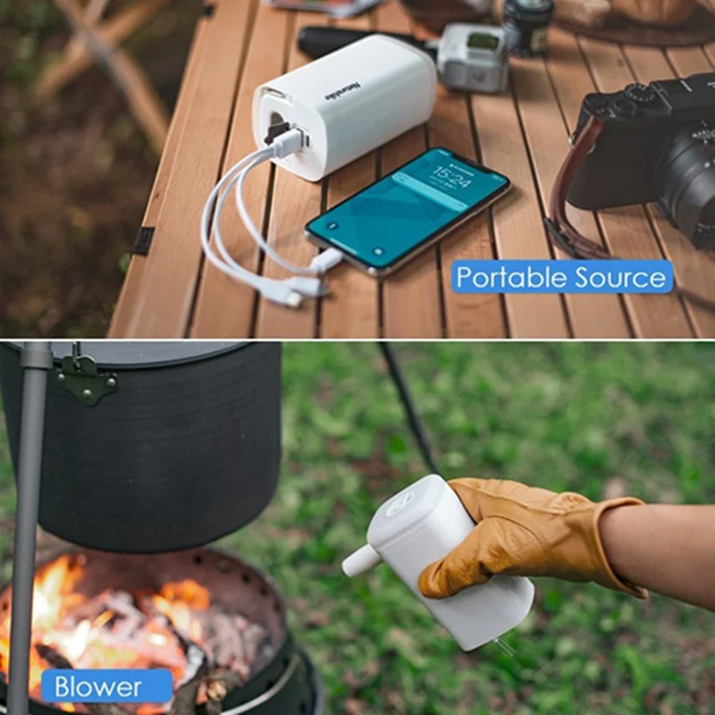 افراد علاقه مند به کمپینگ و کوهنوردی بی شک همواره به دنبال تهیه وسایل و لوازم کم جا و کاربردی هستند تا بتوانند با حمل وسایل سبک تر، کارکردهای متنوعی را شاهد باشند و کمتر اذیت شوند. این وسیله یکی از جذاب ترین محصولات است که با دارا بودن ابعاد بسیار کوچک، کاربردهای متنوعی داشته و شما به جای تهیه پمپ باد، پاور بانک و حتی چراغ شارژی می توانید تنها این محصول را در کمپینگ به همراه خود ببرید. ابعاد کوچک و وزن بسیار کم آن در کنار کاربرد های بی نظیر موجب فروش بالای این محصول شده است. این پمپ باد چند کاره دارای سری نازل های مختلف است که انواع وسایل بادی را راه اندازی می کند. هم چنین می تواند به راحتی فضایی معادل 10 تا 25 متر مربع را نوردهی کند. در زمان نیاز نیز دارای کابل شارژر با سه سوکت مختلف است که برای تمامی موبایل ها کاربرد دارد.