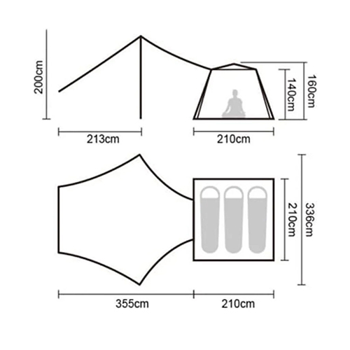 - ابعاد سایبان: سایبان بزرگ 12 متری (336×355 سانتی متر)