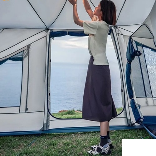چادر بادی 3 نفره نیچرهایک مدل CNK2300ZP012 حرفه ای ترین چادر بادی است که با ابعاد بزرگ برای استفاده سه فرد انتخاب می شود و می تواند اقامتی ایمن و استاندارد را برای آن ها ایجاد سازد. این محصول از سازه های بادی تشکیل شده است که با اتصال به پمپ باد مناسب و راه اندازی استحکام می گیرد و می تواند فضایی دلخواه را ایجاد کند. محصول مورد نظر ابعاد بزرگی دارد که می تواند به عنوان سایبان و سرپناه و اقامتگاه باشد. چرا که بخشی از آن به شکل اتاق ایجاد شده است که دارای درب مجزا می باشد و استراحت و اقامت را میسر می کند. قسمت وسط آن فاقد کف می باشد تا به عنوان حیاط سرپوشیده استفاده شود و در زمان بارندگی نیز بتوان با قرار گیری در داخل آن از محیط اطراف لذت برد. بنابراین طراحی ویژه و خاص دارد و می تواند مزیت های زیادی را نیز به همراه داشته باشد و می توان با خیالی آسوده از آن بهره برداری کرد.