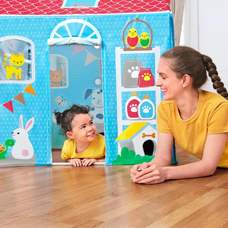چادر بازی کودک بست وی طرح کلبه آبی یکی از خاص ترین محصولاتی است که برای رده سنی کودک تولید شده است و به این صورت محیط بازی آن ها را جذاب تر می سازد و می تواند تمامی مزیت های لازم را برای آن ها ایجاد کند. این محصول دارای دوام و طول عمر بالا است و استحکام زیادی دارد تا به صورت یک کلبه برای کودکان مفید واقع شود و برای آن ها شرایطی ایمن برای بازی را مهیا سازد. محصول مورد نظر بدنه ای مقاوم با طرح های چاپی و رنگی دارد که زیبایی زیادی را به آن بخشیده است و می تواند بدون پس دادن رنگ به محیط و بدون ایجاد تغییر در طی سال های زیاد استفاده شود و مزیت های زیادی را به دنبال داشته باشد.