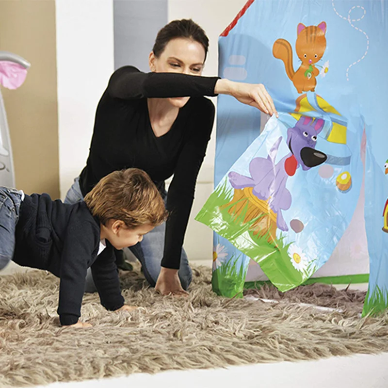 چادر بازی کودک بست وی bestway 14920 از سری محصولاتی است که هم از نظر طراحی و هم از نظر جنس و کیفیت توانسته یک محصول منحصر به فرد و زیبا باشد که قطعا برای فراهم کردن شرایط بازی و استراحت کودکان در داخل منزل و یا هر فضای دیگری مناسب خواهد بود. طراحی این محصول به این صورت است که کودک با توجه به بدنه طرح دار و فانتزی زیبایی که می توانید مشاهده کنید به راحتی می تواند از این محصول زیبا و دیدنی لذت ببرد. هم چنین باید اشاره داشته باشیم که بر روی بدنه اصلی این کالا طرح انواع حیوانات در کنار درخت و گل و گیاه دیده می شود که این مسائل باعث شده تا این کالا بسیار زیبا و جذاب شود. هم چنین این محصول ساختاری شبیه به یک خانه ویلایی دارد که این مسئله سبب می شود تا کودک بتواند فضای شخصی خود را هم برای بازی و تفریح با دوستان خود و هم برای استراحت به خوبی در اختیار داشته باشد. هم چنین مسئله مهم دیگری که باید اشاره داشته باشیم بحث رنگ های شاد استفاده شده در این محصول است که قطعا این مسئله در روحیه کودک نیز بسیار اثر مثبتی خواهد گذاشت.