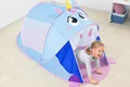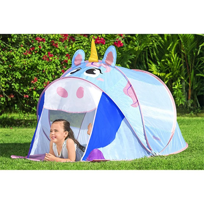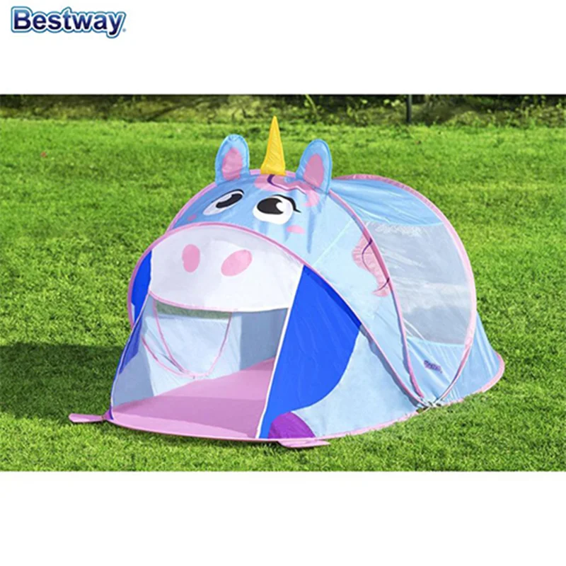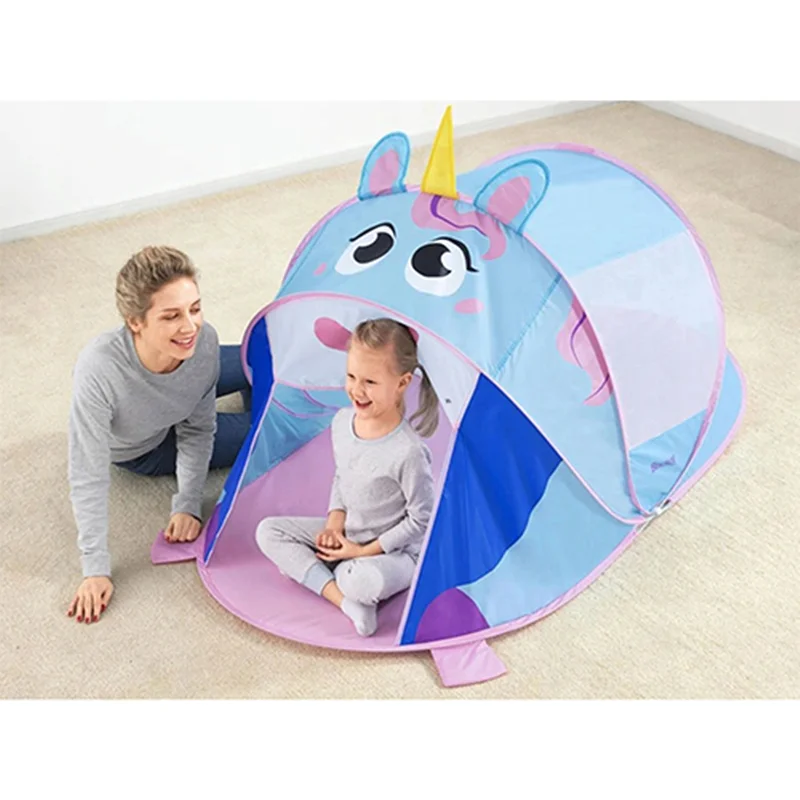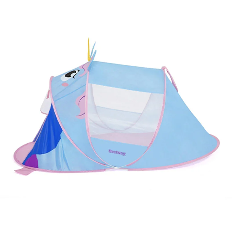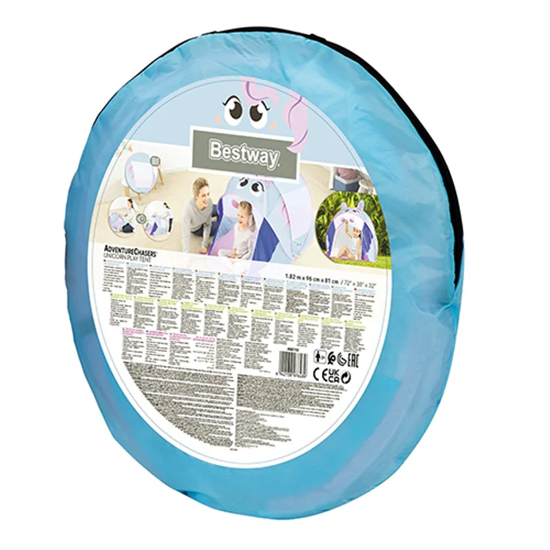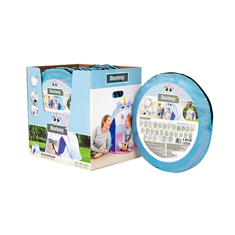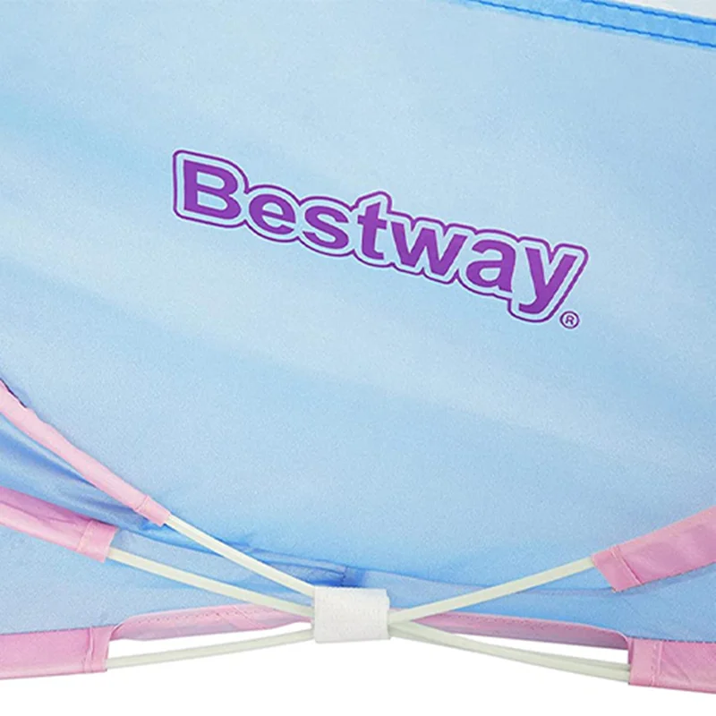 چادر بازی کودک طرح یونیکورن bestway 68110 از سری چادر های بازی جذاب و مهیجی است که قطعا کودک با در اختیار داشتن این محصول می تواند هم برای استراحت و خوابیدن و هم برای بازی و تفریح از فضای این محصول به نحو احسن استفاده کرده و لذت ببرد. طراحی صورت گرفته در این محصول به گونه ای است که شما می توانید اسب تک شاخ و یا به عبارت دیگر یونیکورن را به زیبایی هر چه تمام تر بر روی این کالا مشاهده کنید. رنگ های شاد و جذابی که شرکت بست وی در طراحی این چادر بازی استفاده کرده است باعث شده تا بدون نگرانی بتوانید خرید این کالا را برای فرزند خود به ثبت برسانید. این محصول کاملا نورگیر می باشد به این صورت که در هر دو سمت ناحیه میانی این محصول شما می توانید فضای توری شکل را مشاهده کنید که باعث شده تا به راحتی جریان نور از این ناحیه عبور کرده و یک فضای کاملا ایده آل را برای فرزند خود به ارمغان آورید.