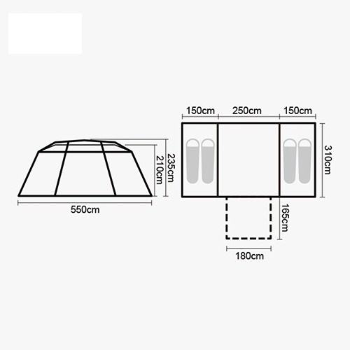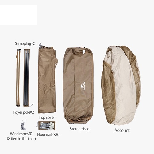 | اقلام همراه | 10 عدد طناب (8 عدد از قبل نصب شده) و 26 عدد میخ برای استحکام بیشتر. کیف حمل |