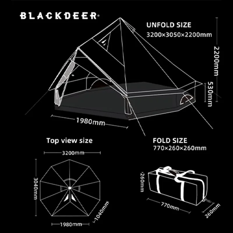 چادر مسافرتی کمپینگ حرفه ای 3 متری Black Deer کرم محصولی جدید با فضای بزرگ و بی نظیر است که با طراحی ویژه برای استفاده خانواده ها و گروه های کمپینگ مناسب می باشد. این چادر مسافرتی برای تمامی فصول سال و انواع آب و هواها مناسب بوده و قابلیت راه اندازی آسان را دارد. این محصول به دلیل دارا بودن ابعاد بسیار بزرگ، فضای مناسب برای خوابیدن دو تا هشت نفر بزرگسال را دارد و به همین دلیل توانسته مورد توجه خانواده ها و گروه های کمپینگ واقع شود. این چادر مسافرتی دارای استحکام بسیار بالایی می باشد که طول عمر زیادی دارد و تا ساله ها قابل استفاده است.