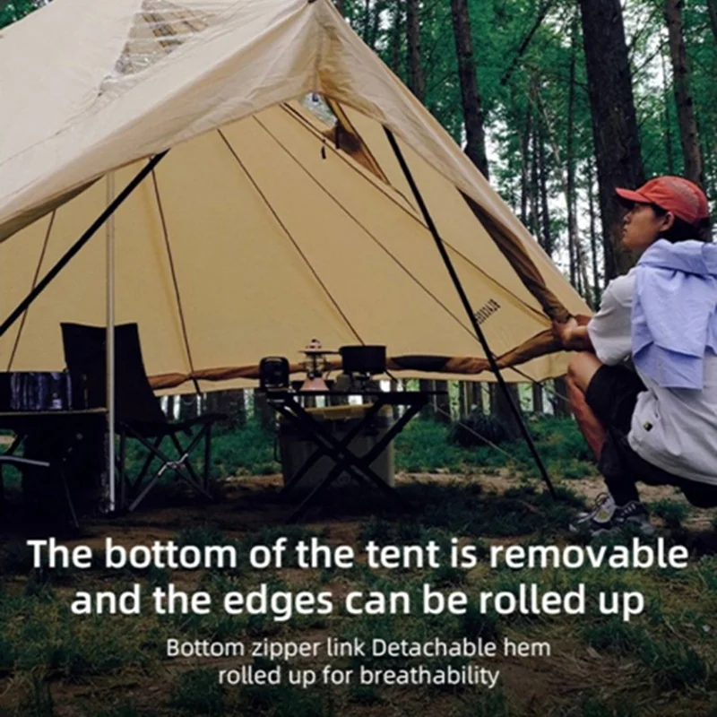 این محصول با دارا بودن کیفیت بی نظیر قابلیت استفاده در شرایط آب و هوایی مختلف را دارد و به راحتی می توان آن را در آب و هوای سرد تا آب و هوای گرم مورد استفاده قرار داد. بدنه این محصول در برابر باران و طوفان مقاومت داشته و به راحتی می توان آن را در شرایط بارانی مورد استفاده قرار داد. این محصول فضای مناسب برای استفاده از بخاری کمپینگ را دارد و هم چنین دارای خروجی دودکش بخاری نیز می باشد. در آب و هوای گرم نیز دارای پنجره های متعدد بوده که دارای توری هستند و تهویه هوای مناسبی را ایجاد می کنند. این محصول میله هایی از جنس آلومینیوم دارد که به راحتی قابلیت راه اندازی داشته و وزن کم و استحکام بی نظیری دارند.