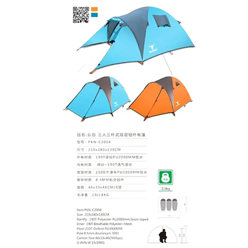 چادر کوهنوردی کله گاوی پکینیو آبی Pekynew C2004 یکی از بهترین محصولات برای استفاده طبیعت گردان است که با قیمتی ارزان و کیفیت عالی توسط فروشگاه اینتکس ایران به صورت مستقیم عرضه می شود. این چادر مسافرتی تمامی ویژگی های بی نظیر برای استفاده در شرایط آب و هوایی نامساعد را دارا می باشد و به همین دلیل توانسته نظر افراد را جلب کند و فروش بالایی را از آن خود نماید. این محصول ابعادی استاندارد و مناسب دارد به طوری که 3 نفر بزرگسال به راحتی می توانند در داخل آن به خواب بروند و در صورت استفاده به صورت نشسته این ظرفیت به 4 نفر می رسد.