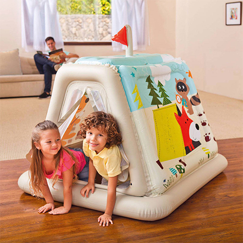 کلبه بادی کودک طرح جنگل اینتکس Intex 48634 بدنه ای محکم و استوار را تشکیل داده است که به عنوان محلی برای بازی کودکان در نظر گرفته می شود. در داخل این محصول افراد می توانند آرامش و راحتی زیادی داشته باشند و به سرگرمی و تفریح بپردازند. چادر بازی مد نظر تشکیل شده از سازه های بادی است و دیواره های محکم آن بدنه ای با استحکام بر روی سطوح مختلف را شامل می شود. در نتیجه کودکان در زمان بازی با خیالی آسوده در داخل آن قرار می گیرند. وزن کم بدنه نیز سبب جا به جایی آسان محصول می شود. شما می توانید چادر بازی مد نظر را در گوشه ای از منزل قرار دهید تا در هر زمان که نیاز به استفاده کردن از آن باشد به راه اندازی آن اقدام نمایید.