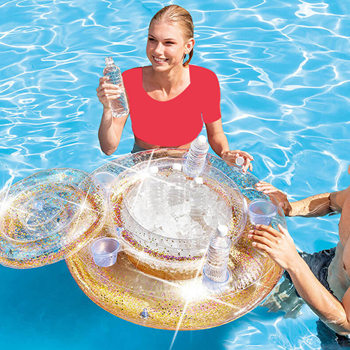 کلمن بادی روی آب شاین دار طلایی به جهت به همراه داشتن نوشیدنی و آب در روز های گرم تابستان و در محیط آب های آرام ساخته شده است که دارای بدنه ای استاندارد می باشد و می تواند بهترین شرایط برای روز های آفتابی باشد. به این ترتیب کسانی که در تایم طولانی داخل محیطی های آبی مانند استخر حضور دارند می توانند از این محصول نیز استفاده کرده و در زمان نیاز به آب و نوشیدنی محصول را در اختیار داشته باشند. ساختار این محصول گرد می باشد و از بدنه ای شفاف با شاین های طلایی تشکیل شده است که زیبایی خیره کننده ای را ایجاد کرده است و می تواند بهترین و خاص ترین محصولی باشد که برای تفریحات آبی لازم و ضروری می باشد. در ساختار محصول جالیوانی های متعدد وجود دارد که دارای قابلیت به همراه داشتن آب و نوشیدنی است و می تواند در صورت نیاز و تمایل به استفاده از آب در دسترس آسان قرار گیرد.