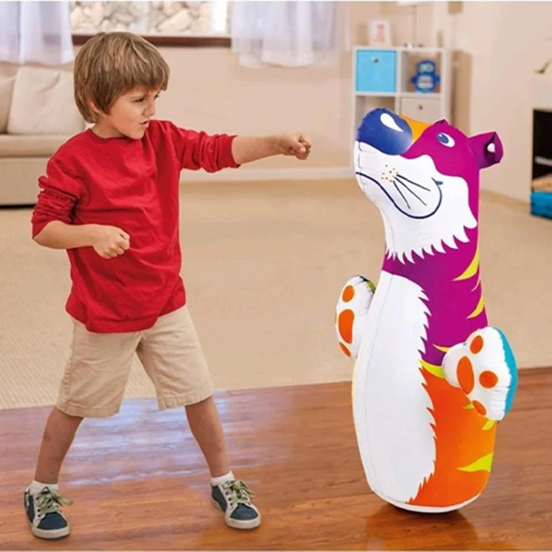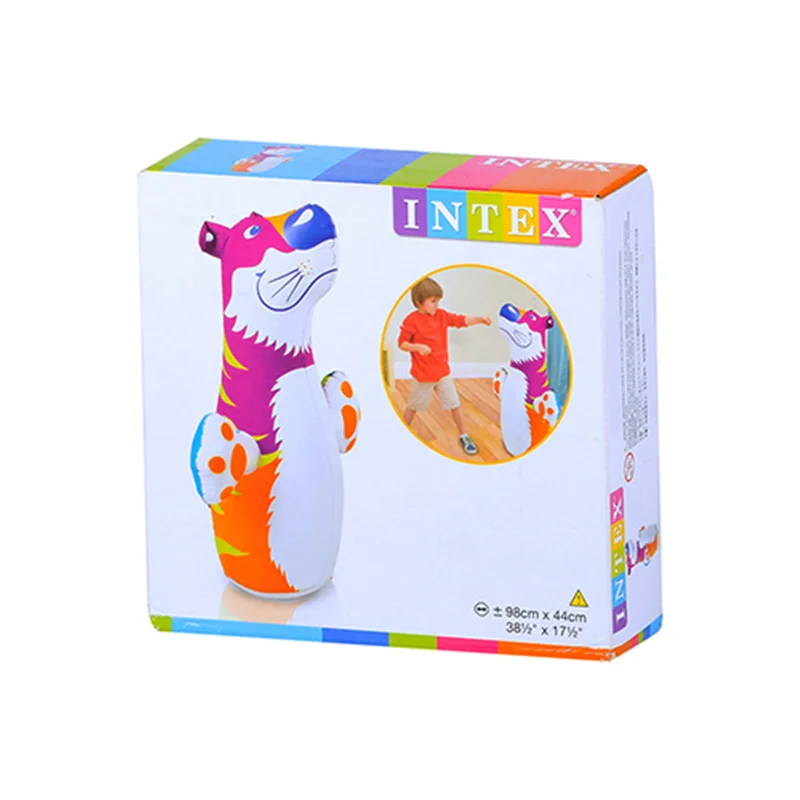 کیسه بوکس بادی کودک طرح ببر intex 44669 از سری کیسه بوکس های بادی و مهیج بوده که فروشگاه بزرگ اینتکس به تازگی آن را تولید و عرضه کرده تا این بار علاوه بر کودکان، بزرگسالان نیز بتوانند از این محصول استفاده کرده و نهایت لذت را ببرند. لازم به ذکر است که طراحی صورت گرفته در این کیسه بوکس به گونه ای است که قطعا می توان از آن در داخل منزل، باشگاه های ورزشی و یا هر فضای دیگری به راحتی استفاده کرد که همین امر یکی از مهم ترین دلایل انتخاب این محصول توسط مشتریان می باشد. البته علاوه بر تمامی این ها باید اشاره داشته باشیم که از نظر نوع طراحی نیز این کیسه بوکس ظاهری فوق العاده شیک و زیبا دارد و در واقع ساختار استوانه ای شکل این محصول در کنار طرح های موجود بر روی این کالا سبب شده تا علاوه بر کیفیت عالی، زیبایی و جذابیت را هم برای مشتریان به ارمغان آورد.