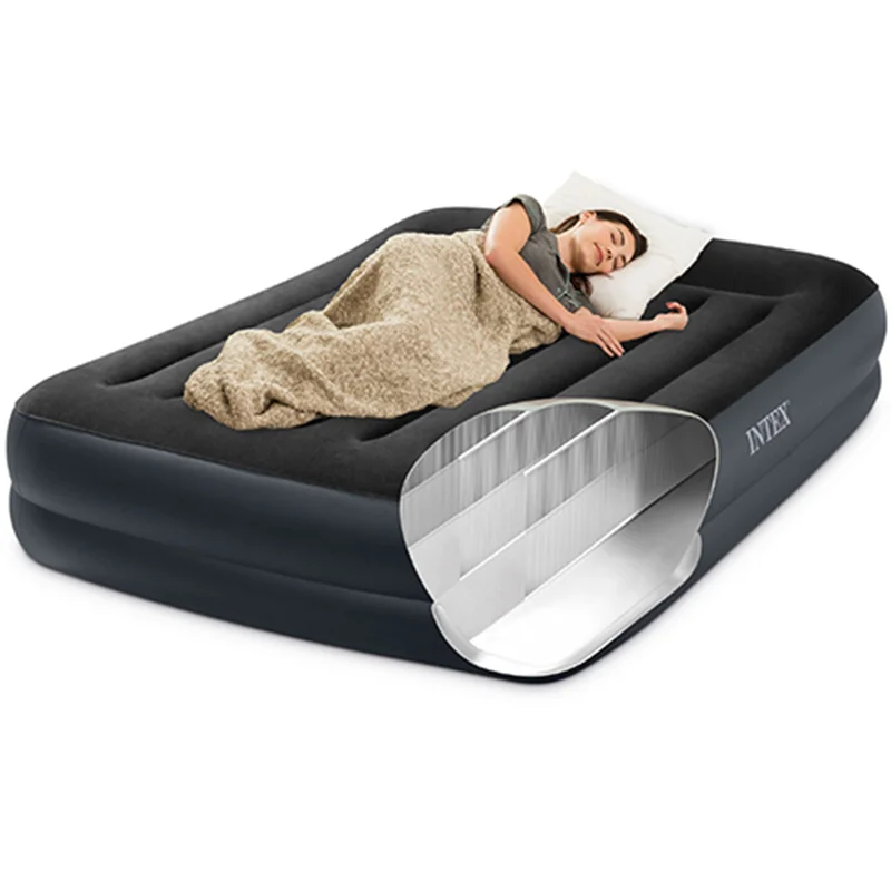 تخت بادی دو نفره اینتکس مدل DURA-BEAM PLUS یکی از بهترین محصولاتی است که به جهت ایجاد آرامش و راحتی در افراد ساخته شده است و امکان بهره مندی از آن در مکان های مختلف وجود دارد. تخت بادی سطحی طبی و راحتی را ایجاد کرده است تا افراد بر روی آن قرار گیرند و احساس خوشایندی را به دست آورند. از این رو داشتن این محصول منحصر به فرد و خاص سبب شده است که استفاده کنندگان بتوانند موقعیت دلخواهی را داشته باشند و در این موقعیت استراحت و خواب نیز داشته باشند. برای معرفی محصول می توان به ساختار بدنه اشاره کرد که تشکیل شده از بدنه ای بزرگ با ابعاد دو نفره می باشد که رویه مواج و طبی را تشکیل داده است. این رویه برای ستون فقرات را در موقعیت استاندارد قرار داده است که در نتیجه افراد بتوانند بدون آسیب و درد در این ناحیه از محصول استفاده کنند و خستگی را برطرف سازند.