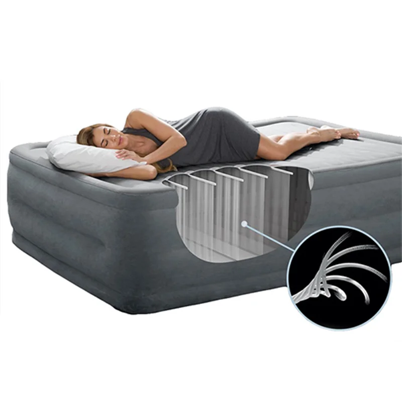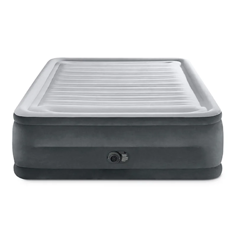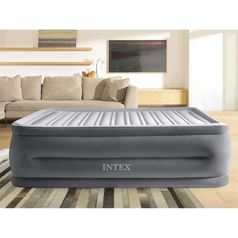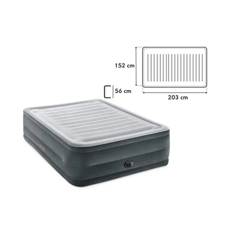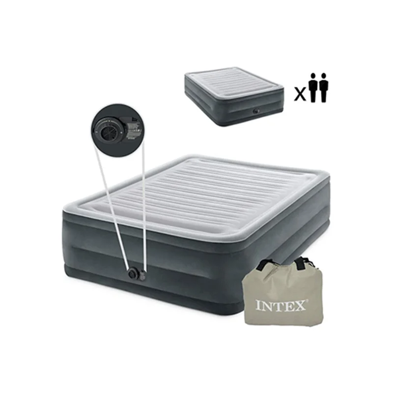 تخت بادی دو نفره طبی اینتکس مدل Comfort Plush High تولید سال جدید میلادی و جزو باکیفیت ترین تخت های بادی اینتکس می باشد که با پمپ باد برقی سرخود و همین طور وجود ساک حمل و چسب تعمیرات عرضه شده است. ارتفاع بلند این تخت بادی در کنار رویه و بخش های کناری کاملا مخمل محصول از دیگر ویژگی های فوق العاده این تخت بادی است. از نظر ارتفاع در میان تخت های بادی این محصول بلند ترین ابعاد را داراست که امکان خرید و ثبت سفارش از سایت نمایندگی اینتکس ایران برای شما عزیزان فراهم است.