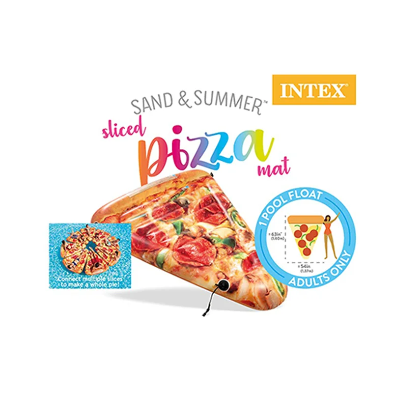 تشک بادی روی آب طرح پیتزا intex 58752 از سری شناورها و تشک های بادی روی آب باکیفیت و محبوبی است که قطعا با توجه به طراحی دقیق و زیبایی که دارد در میان اقشار مختلف نیز به یک محصول محبوب تبدیل شده است. در همین رابطه باید اشاره کنیم که این تشک بادی روی آب ساختاری شبیه به پیتزا دارد که همین عامل باعث شده تا مشتریان بتوانند به زیبایی هر چه تمام تر از این محصول بر روی آب استفاده کرده و لذت ببرند. طراحی صورت گرفته در این تشک روی آب به گونه ای است که شما می توانید طرح پیتزا را به راحتی بر روی این محصول با وضوح بالا و ظاهر فوق العاده مشاهده کنید. هم چنین بدنه اصلی این محصول نیز دارای یک سری شیار می باشد که باعث شده تا یک کالای کاملا طبی را در اختیار داشته باشید.
